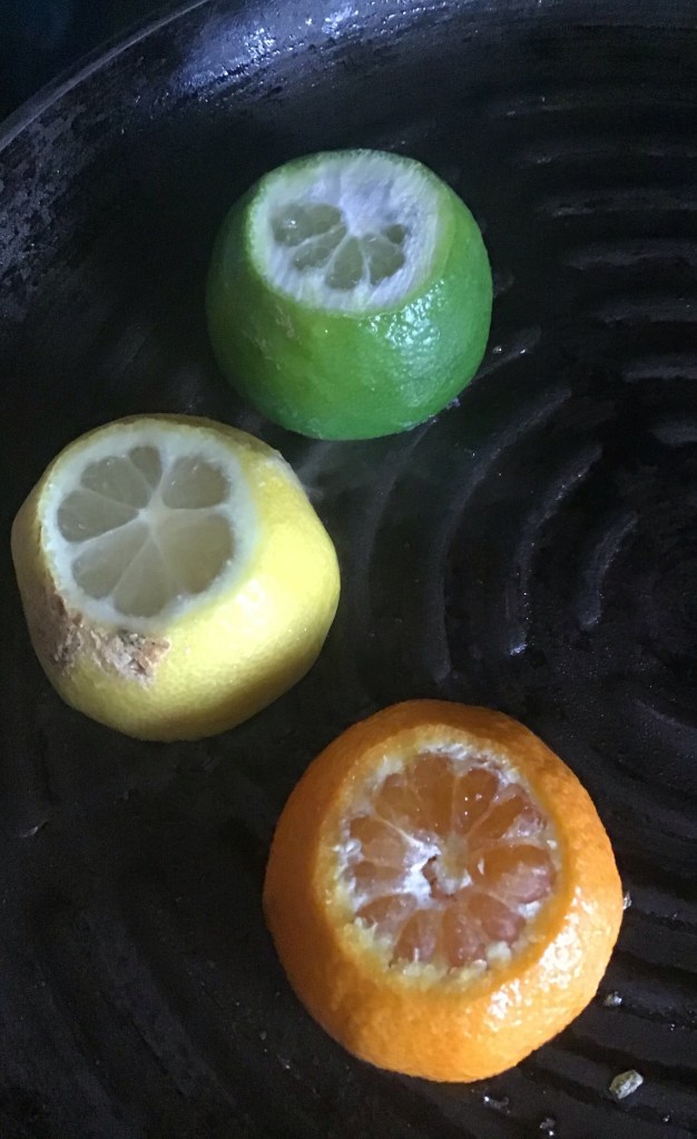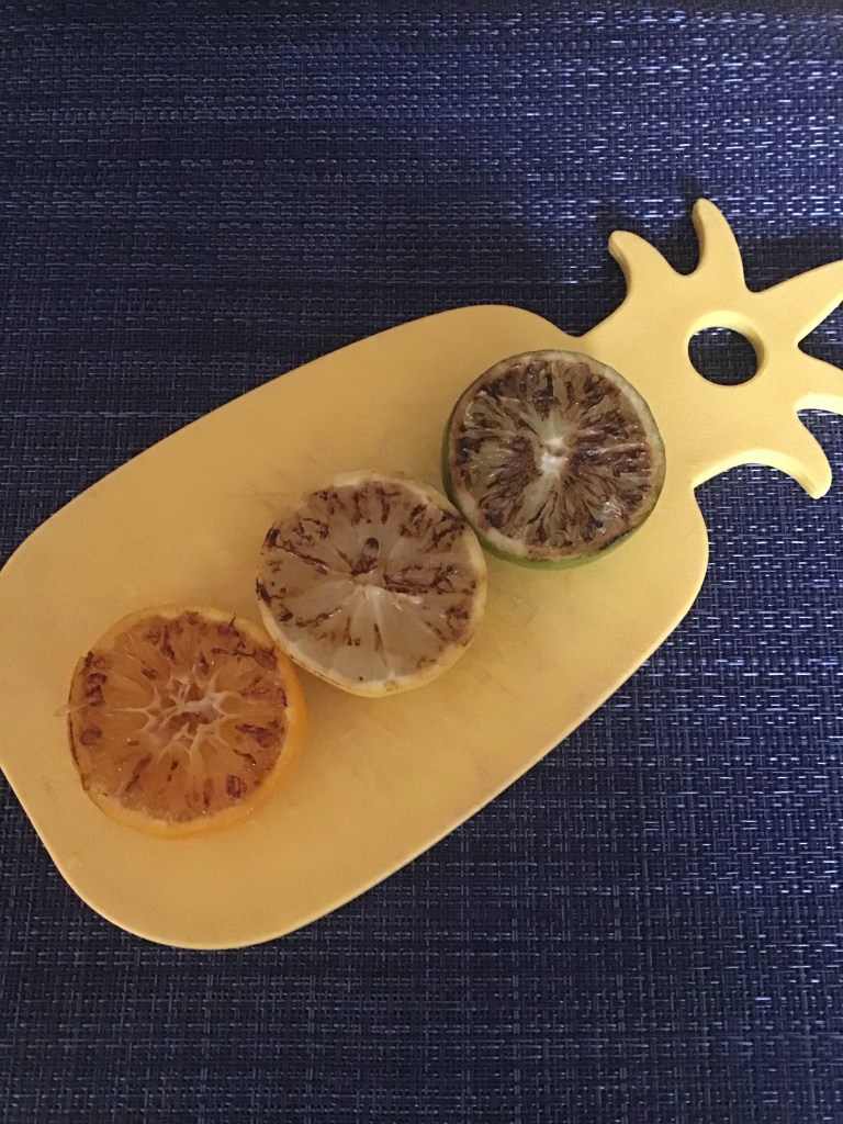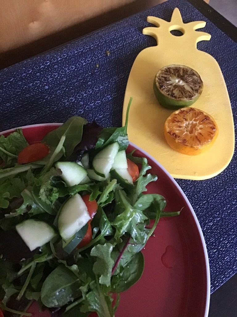 Finally, number 3, is an almost calorie free option and kinda my favorite. It is simple yet tasty. I will throw a peace of citrus on the grill and use only that as my dressing! Grilling citrus changes the flavor of the fruit…it makes it sweeter and adds a bit of smokiness. It also makes it a lot juicier so a half a lemon/lime/orange etc goes a long way. I usually squeeze it on my greens with a little bit of salt to toss and enjoy.